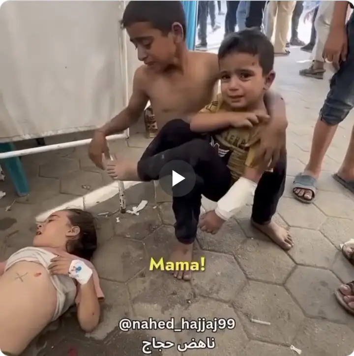 🚨HEARTBREAKING: Ten year old Zain carries his injured brother and comforts his wounded sister, telling her their mother will come.
